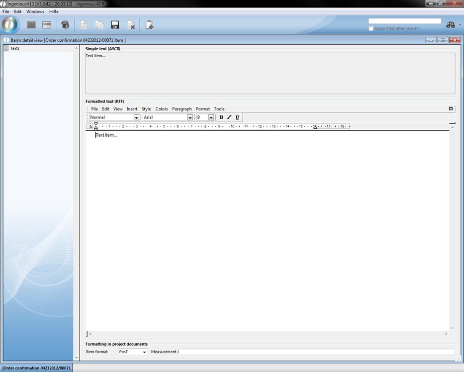 Additional explanations or tips can be entered into a text item. Go to the place in the document where the text should be inserted and choose “Items - new text item”.