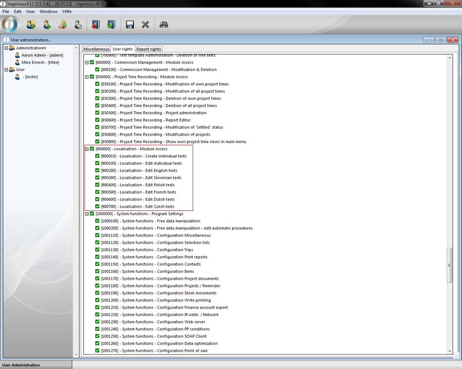 In order to start the localization program, the corresponding user rights have to be released in the user administration.