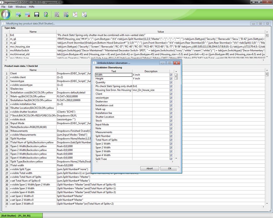 A window will open up, where all part list texts are listed. Here you have got the possibility to rename the texts or add a description in the field “Description”. When you check the field “EN”, the additional descriptions will be displayed automatically in the english translation.