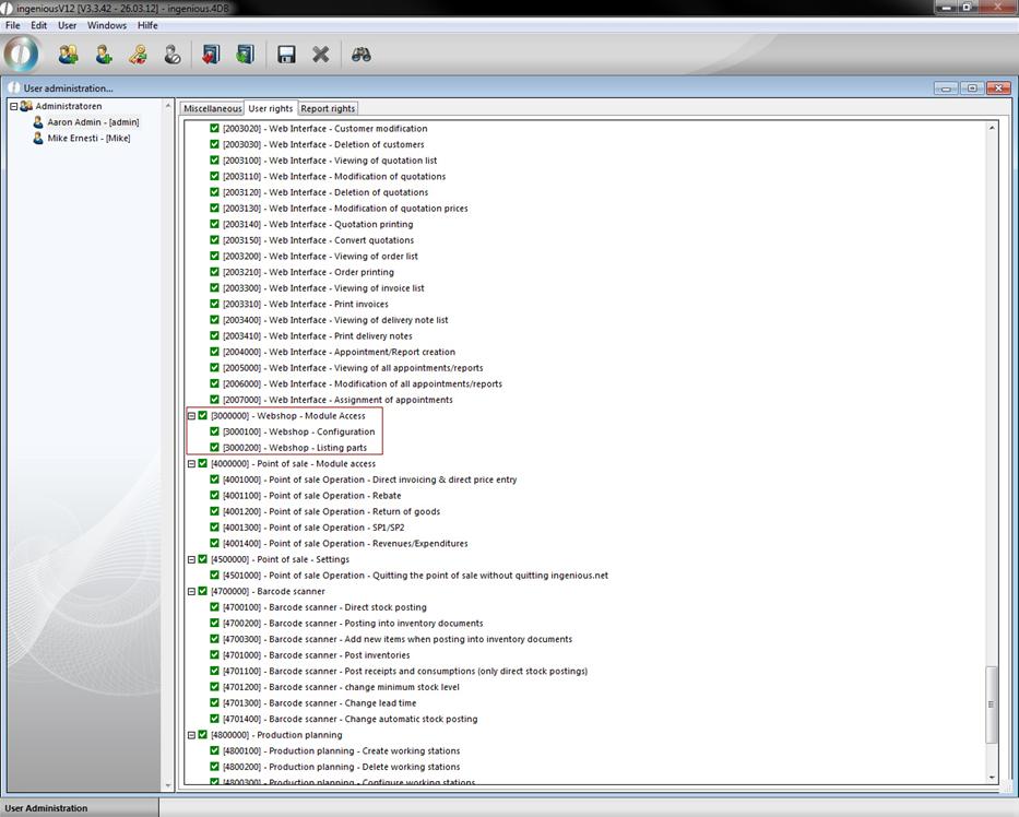 The column, “Webshop” is only visible when you have activated the corresponding user rights in the user administration.